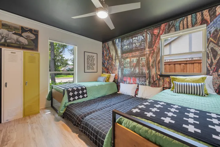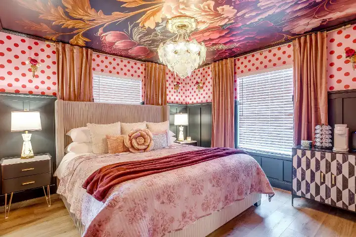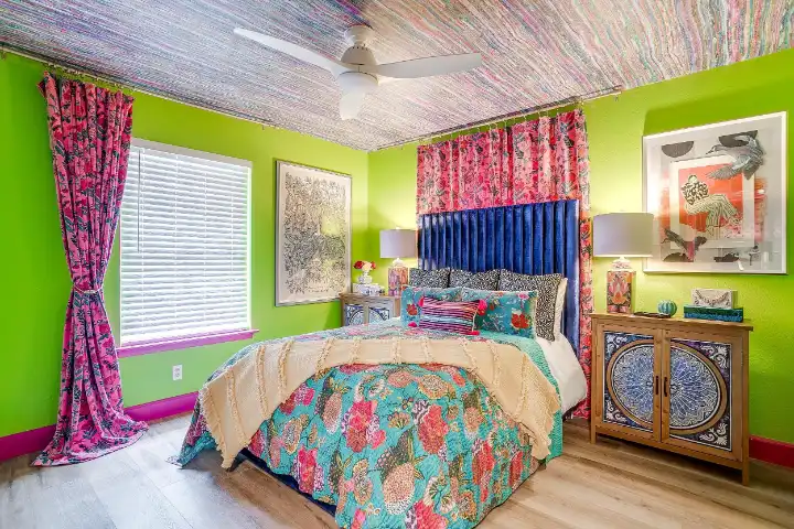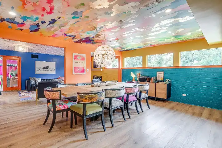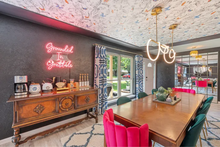 These homes have been designed for Girls’ getaways, Bachelorette trips, spouse/bestie romantic vacations, Christian retreats and family gatherings. Each home's design was inspired by the Bible, Bachelorettes and Besties. They have all been creatively infused with vibrant colors, bold patterns, varied textures and whimsical art and décor that can’t help but make you smile. Some people call this the dopamine design trend. I call it the reflection of God’s own creative nature. We are all made in His image, and this includes the gift of creativity & design. We pray that the very nature of these homes help you see and experience God’s goodness and presence in your lives, and that they offer the perfect retreat for closeness and intimacy with each other & Jesus.