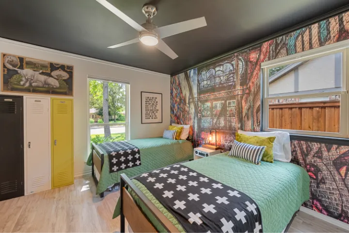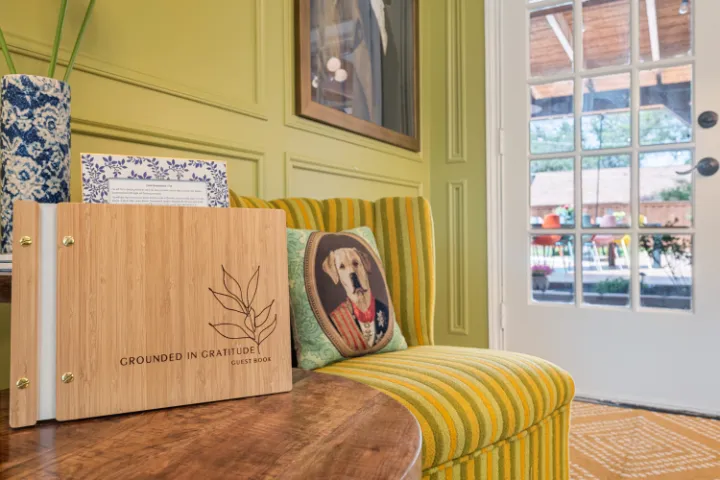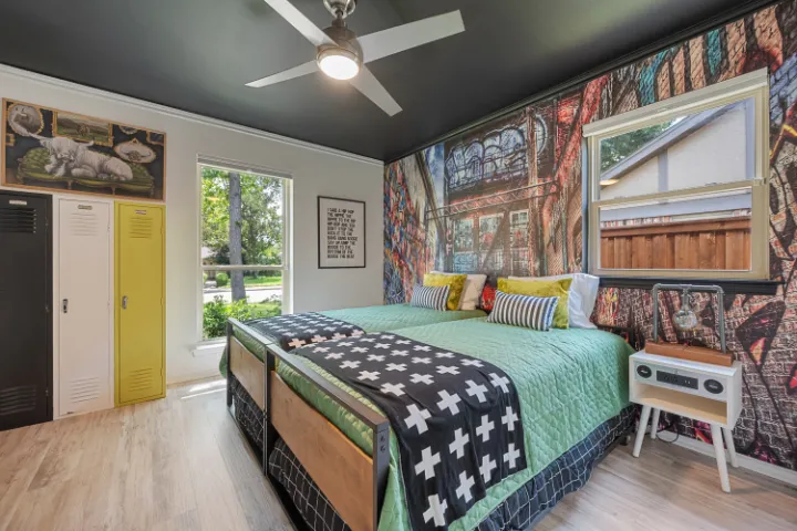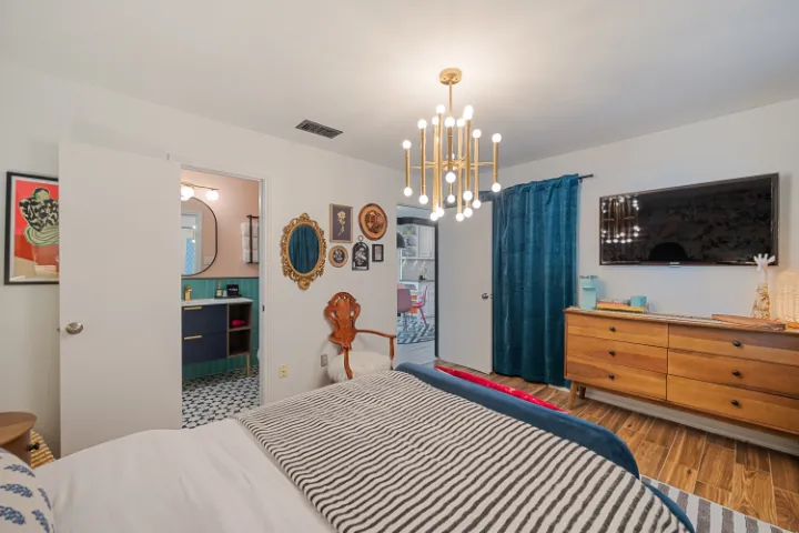 Grounded in Gratitude is an eclectic, stunning, one-of-a-kind home. It’s a vibrant 4BR/3BA house with no stairs, a covered patio & a saltwater pool. Located right between Dallas & Fort Worth & only a few minutes away from AT&T Stadium, Globe Life Field, Texas Live, Six Flags & so much more.