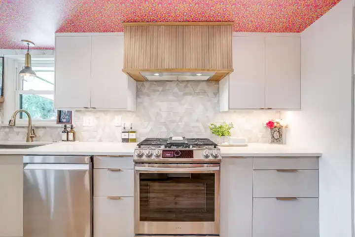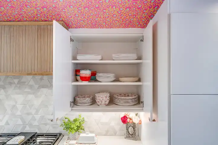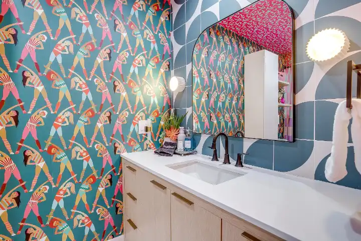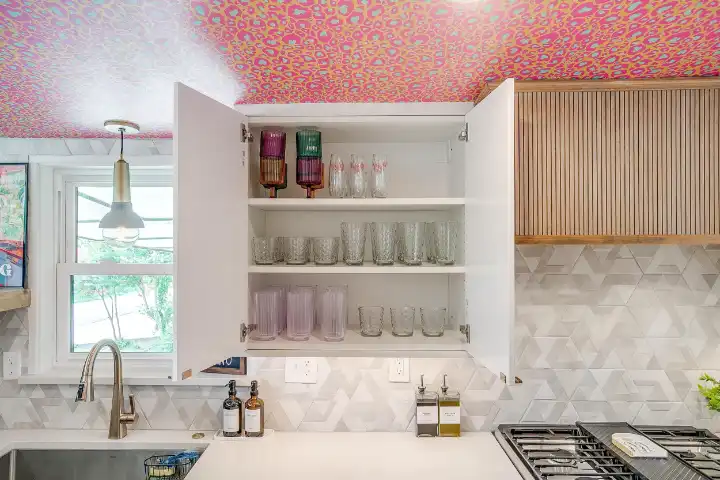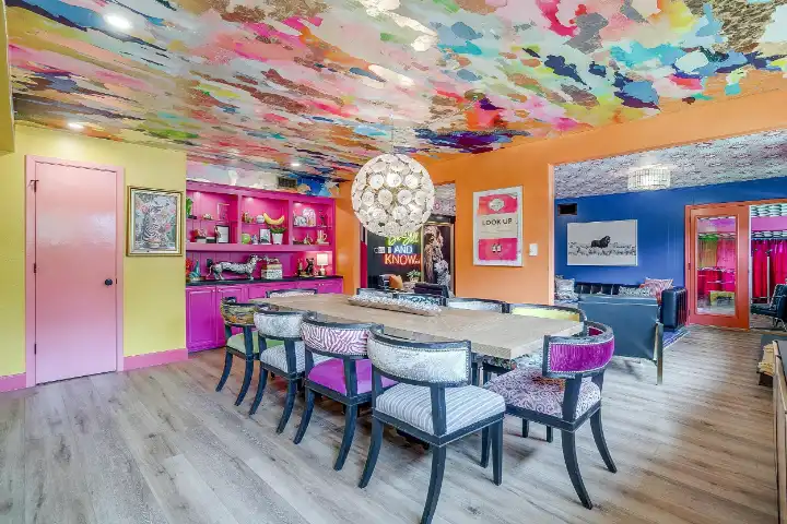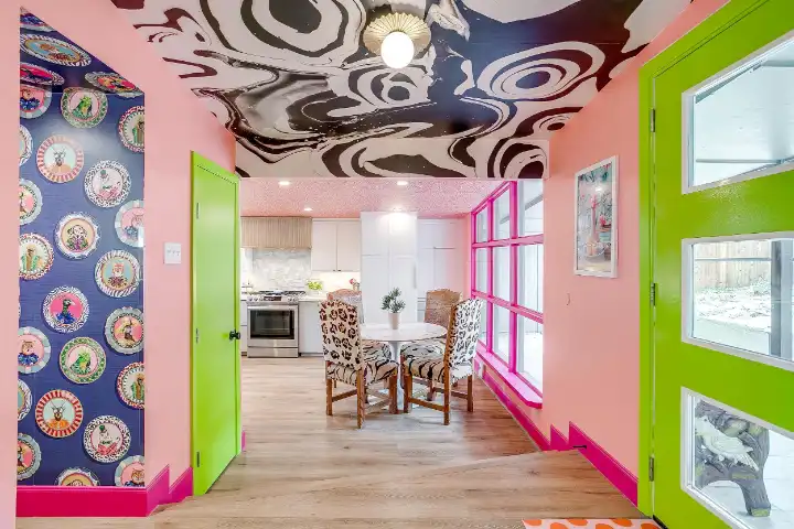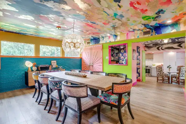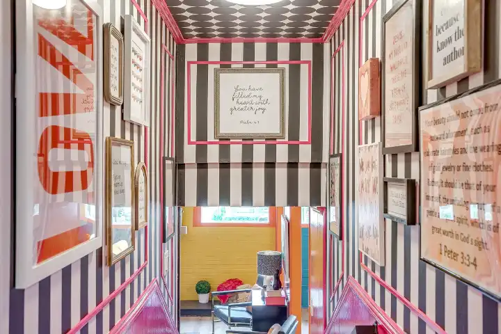 Looking up is exactly what guests will find themselves doing while visiting LOOK UP! Explosive wallpaper and art creations covering every ceiling of this home will entice you to look up. Along with the color-crazed ceilings, artful reminders throughout the home remind us to “look up” at Jesus! This home encourages our guests to look up at Him, and wallpaper, in reflection of God’s own creative nature. We are made in His image, and this includes the gift of creativity & design! I personally believe that Jesus loves wallpaper😉!